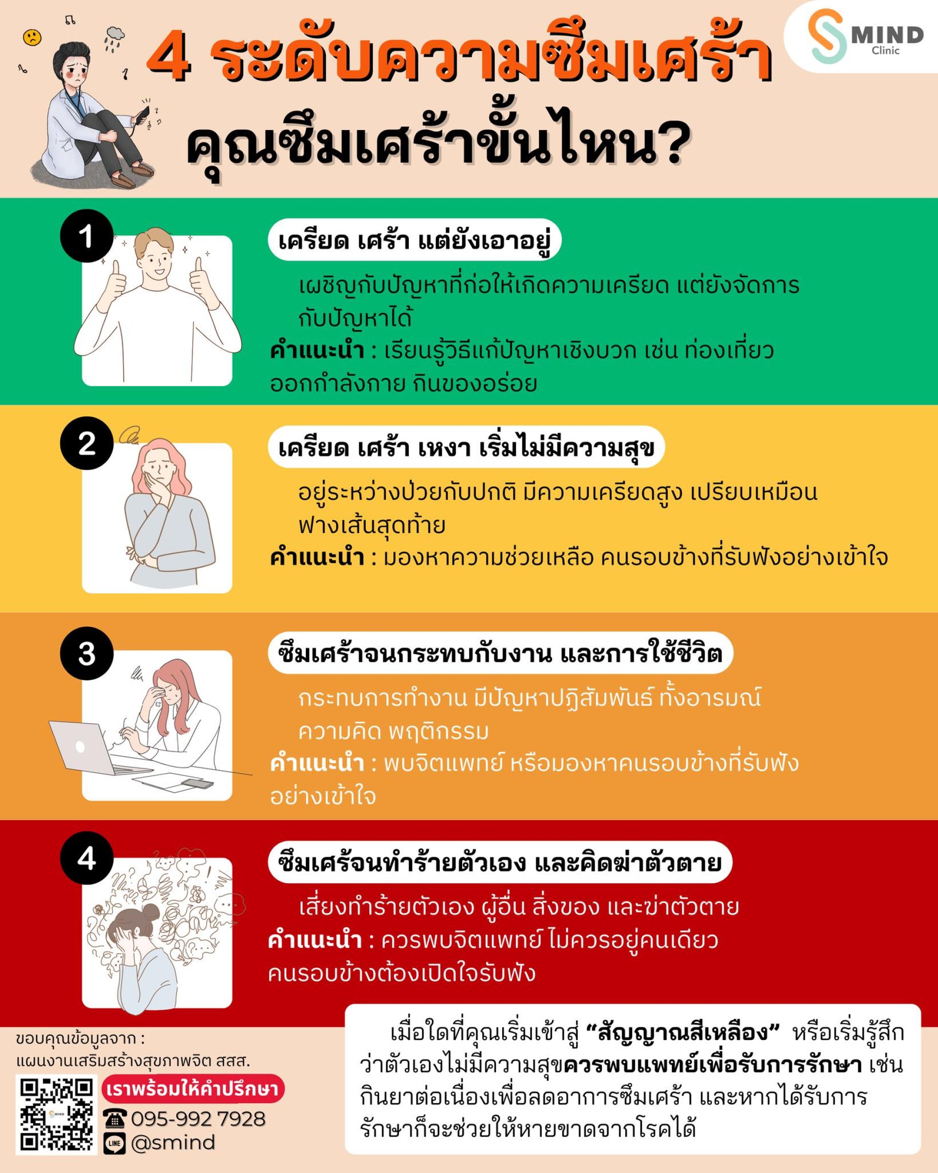 สำหรับผู้ที่มีอาการตามที่กล่าวมา หากมีอาการเกินกว่า 2 สัปดาห์ หรือ เริ่มรู้สึกว่าส่งผลกระทบต่อการใช้ชีวิตประจำวัน ควรพบจิตแพทย์เพื่อตรวจสอบวินิจฉัย หากพบเร็ว รักษาเร็วก็หายได้ไวและสามารถกลับมาใช้ชีวิตได้อย่างมีความสุขมากขึ้น